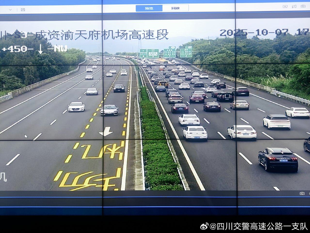 10月7日,国庆假期第七日,记者从四川高速公安一分局获悉,截至17时05分,成都周边高速部分路段车流量大出现排行情况。